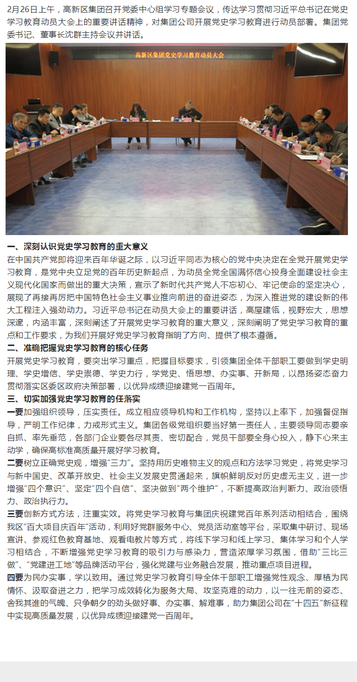 - 党建动态 - 明理 增信 崇德 力行 学党史,庆百年—高新区集团开展党史学习教育动员